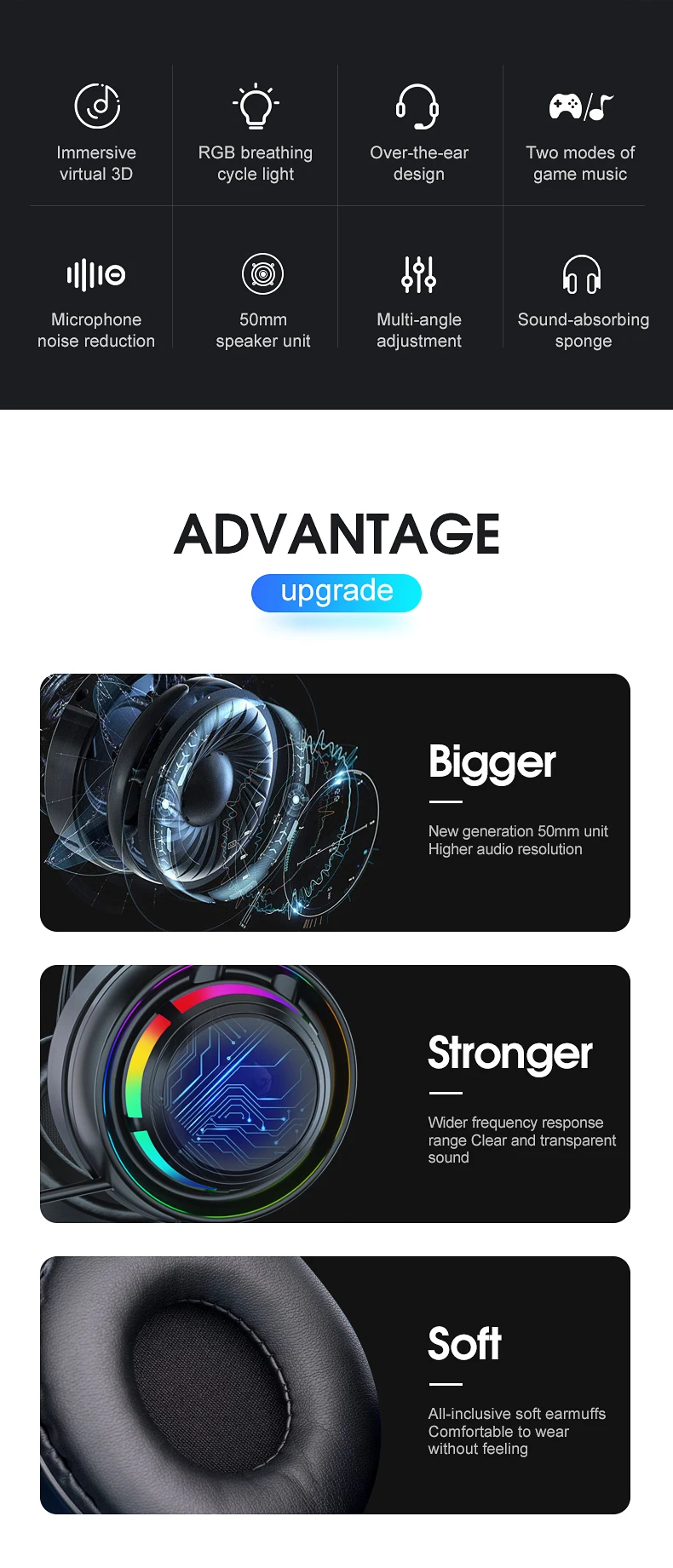 MATÉRIA:1. som de qualidade: fone de ouvido estéreo surround virtual de 7.1 canais com luz led, entregar um som claro, nítido e rico, experimentar um campo de som imersivo de 360 graus, criar uma melhor atmosfera de jogo para o jogador.2. construído para o conforto: fone de ouvido leve extra com protetores de ouvido acolchoados e faixa de couro adaptável do plutônio para o conforto de longa duração, apropriado para os entusiastas do jogo, jogador profissional, permitindo que você muitas horas de diversão do jogo.3. controle de ruído: fones de ouvido de jogos profissionais com isolamento de ruído design de fones de ouvido fechados, cobre toda a sua orelha e corta o som externo de forma eficaz. Coloque o fone de ouvido, o mundo pertence a você.4. microfone flexível: microfone de rotação de 360 graus com super redução de ruído, pega sons com ótima sensibilidade e remove o ruído. Cabo de metal de memória mic & design de mangueira durável, permitir rotação aleatória.5. compatibilidade alta: oferece compatibilidade multi-plataforma, jogadores de computador também pode equilibrar o som do jogo e chat de voz ao usar aplicações de bate-papo separadas, como discórdia ou skype, laptops.